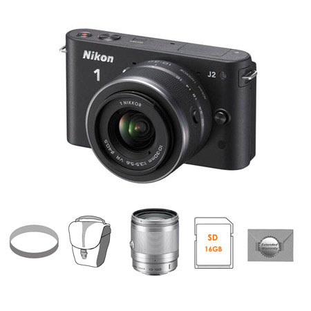 Cyber Monday Nikon 1 J2 Camera with 10-30mm Lens, Black - Bundle - with Nikon 10-100mm Silver Lens, 16GB SDHC Memory Card, 40.5mm UV Filter, Mack 3 Year Extended Warranty, C By Nikon listed on Adorama.