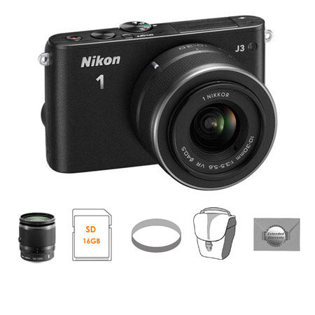 Nikon 1 J3 Camera with 10-30mm VR Lens, Black - Bundle - with Nikon 10-100mm VR Black Lens, 16GB SDHC Memory Card, 40.5mm UV Filter, Mack 3 Year Extended Warran can also be a gift, You should have it no complaints about it. It can complete the needs.