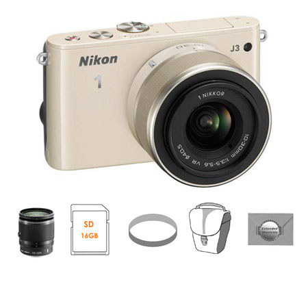 Cyber Monday Nikon 1 J3 Camera with 10-30mm Lens, Beige - Bundle - with Nikon 10-100mm VR Black Lens, 16GB SDHC Memory Card, 40.5mm UV Filter, Mack 3 Year Extended Warranty, By Nikon listed on Adorama.