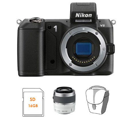 Cyber Monday Nikon 1 V2 Mirrorless Digital Camera Body, Black - Bundle - with Nikon 1 Nikkor 30-110mm f/3.8-5.6 VR Lens (White) , SanDisk 16GB Extreme SDHC Memory Card, Lowep By Nikon listed on Adorama.